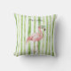 Green White Stripes Pink Flamingo Beach Birthday Cushion