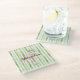 Green White Stripes Pink Flamingo Glass Coaster