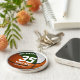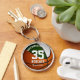 This sporty team colours basketball themed keychain for boys or girls features a simple basketball graphic with two recolored panels--one green and one white--and easily customisable school name & mascot name and player name & jersey number - by katz_d_zynes