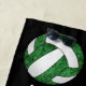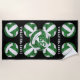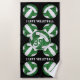 This girls' volleyball team colours personalised beach towel features a pattern of green and white stylised volleyballs arranged in a mirrored pattern with text that reads, "I love volleyball" - her name and jersey number are customisable - by katz_d_zynes
