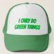 GREEN/WHITE TRUCKER HAT: "I ONLY DO GREEN THINGS" Trucker Hat (
