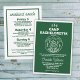 Green and white camp bachelorette party invitation. The back can be personalised with the weekend events or itinerary for a destination bach, the RSVP information, and registry details.