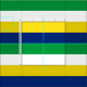Green, white, yellow and blue striped pattern fabric