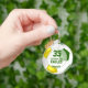 This kids' soccer keychain for boys with green and yellow school colours features a classic soccer ball with green, yellow and white panels - customise the player's name and jersey number plus school and team mascot name - by katz_d_zynes
