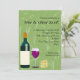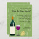 Rich and elegant modern contemporary wine and cheese tasting party invitations! Great to celebrate any business after hours cocktail or personal special occasion. Sage Lime Green, with wine bottle, glass and swiss cheese sample, with swirly vines background. Customise online with your event details.