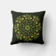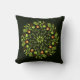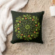 Green witch nature lover pillow with a mandala with potions, mushrooms and leaves and half moon motifs.