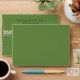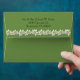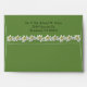Stylish green wedding envelope, with graphics of a garland of Edelweiss blooms, along the edge of the back flap. Inside is lined in white with green polka dots. Black text, on the back flap, is ready to personalise for your big day. Matching products available.