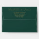 The bride and grooms names and return address are show in gold elegant script on these forest green wedding invitation envelopes. To edit the text click on the personalise button.