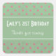 Green with Pink Polka Dots Birthday Thank You Square Sticker
