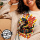 The design looks particularly striking on classic white and black backgrounds, making it a versatile choice for any outfit, but is also suitable for other background colours. Easily transferable onto another t-shirt or other product.