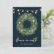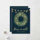 Green Wreath with Gold String Lights on Blue Holiday Card