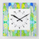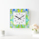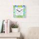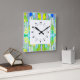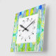 Green Yellow Cute Modern Tropical Boho Leaves Square Wall Clock