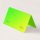 Folded business card template with beautiful green yellow gradient background and grey fonts .Simple and trendy design by Alma Wad .Personalise all sides now . Sold per pack of 25 .