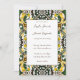 Green yellow Portuguese Mediterranean tiles all in one wedding invitation editable template handwriting vintage folk tile ornament pattern boho wedding invitations with wedding details and qr rsvp at the back, if qr not needed - just delete url address from drop down menu