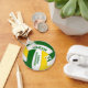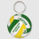 This personalised boy's volleyball keychain with team name features a green, yellow and white volleyball upon which you can customise the player's name and jersey number plus school team and mascot name - by katz_d_zynes | search ALL katzdzynes' green & gold volleyball team colours gifts >>>> https://www.zazzle.com/store/katz_d_zynes/products?cg=196234680336026903