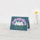 Beautiful garland featuring pink and purple crocus flowers and white roses against an aqua green colour background. The yellow colour greeting text uses an attractive script typography font. The flowers cover the front of this card which can be used as a thank you card, a birthday card, or any other card of your choice. Personalise it with your text and/or pictures to make it one-of-a-kind!