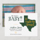 Announcing the latest baby made in Texas! Let everyone know when your little one arrives with this classy announcement in colours for the major Texas schools. Front features space for baby's name and birth details, along with your names. It all sits beside a big state shape of Texas in stripes. Back side for your horizontal image. Matching products available.