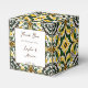 Green yellow Portuguese Mediterranean tiles wedding personalised printed candy favour box template handwriting vintage folk tile ornament pattern boho wedding favours almond favour box