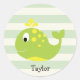 Green & Yellow Whale on Pastel Green Stripes Classic Round Sticker