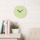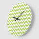 Green Zigzag, Green Chevron, Geometric Pattern Large Clock