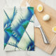 Green zigzag or saws on intense cyan to royal blue tea towel