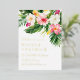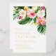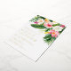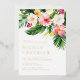 Invite guests to your wedding with this customisable foil pressed engagement party invitation. It features watercolor garland of hibiscus, plumeria, palm leaves and other tropical plants. Personalise this tropical engagement party invitation by adding your own details. This gold foil engagement party invitation is perfect for destination weddings and summer weddings.