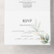 Eucalyptus and other greenery with gold glitter accents. The RSVP is perforated making it easy to tear off and send back. The postcard is the correct size for sending via USPS at the lower postage pricing, and the back flap that overlays the postcard is large enough to cover the return address and stamp sections to avoid confusion with mailing. Personalise with your own information. If you need help with this invitation or for custom requests you need my help with, do not place this merchandise in your cart. Instead, email me your request at shutterbug600@yahoo.com. Please Note: I can only help with the design - all shipping and printing is handled by Zazzle and questions concerning your order should be directed to Zazzle support: SUPPORT: https://help.zazzle.com/hc/en-us/articles/221463567-How-Do-I-Contact-Zazzle-Customer-Support-. I do not have access to your account and can't make changes once you've placed your order. Also, CHAT is not live, but I typically answer within 24 hours.