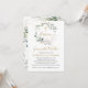 Baby Baptism/Christening Invitation Card. This design features an illustration of green and golden foliage in watercolor style with golden effect confetti on the top