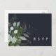 Greenery and Gold Leaf Navy Menu Choice RSVP Card