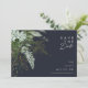 Greenery and Gold Leaf Script Dark Navy Horizontal Save The Date