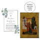 Greenery and gold frame Eastern Orthodox Christian wedding prayer card. A beautiful way to give a memento to your wedding guests and a prayerful treasure for you to keep from the day of your wedding. All texts and fonts can be customised. Please don't hesitate to contact us with any questions. Please note: Most of the icons are very old. If the image is increased more than we have it, the image might get distorted. We do not print, manufacture or mail any of the products. Thank you!