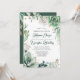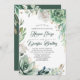 Various greenery, white watercolor flowers, and faux gold foil plants elegant engagement party invitations