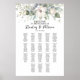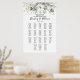 Elegant wedding seating chart with greenery and blush roses, up to 18 tables