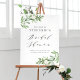 Welcome guests to your event with this customisable bridal shower welcome sign. It features watercolor greenery and white flowers. Personalise this custom bridal shower sign by adding your details. This greenery bridal shower sign is perfect for spring and winter bridal showers. Matching items are available.