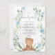Greenery Bear Blue Flowers Boy Baby Shower Invitation