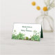 This elegant spring wedding escort place card showcases beautiful greenery borders and wooden accents on the top and bottom, as well as the table number. The vintage-inspired design adds a touch of charm and sophistication to any wedding celebration, creating a timeless and romantic atmosphere for guests to enjoy.