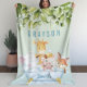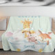 Greenery Botanical Cute Baby Animals in a Tub Fleece Blanket