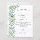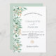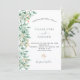 A chic white background decorated with green and faux gold botanical sprigs, greenery florals and foliage. Personalise and add your names and wedding details. Black and green letters.