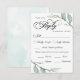 Watercolor greenery branches theme with calligraphy script. White background with black script and green watercolor accents. Wedding RSVP Reply Card.
