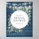 Featuring pretty string lights and delicate watercolor greenery leaves on a rustic blue wood background, this chic botanical bridal shower sign can be personalised with your special bridal shower information. Designed by Thisisnotme©