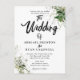 Invite your loved ones to celebrate your special day with this elegant wedding invitation, designed for greenery and rustic-themed weddings. The text beautifully combines a classic serif font with modern brush calligraphy, creating a timeless and sophisticated feel. At the top, The Wedding Of is written in graceful brush calligraphy, setting a romantic tone. Delicate greenery watercolor illustrations frame the design, adding a natural and organic charm. Perfect for couples who love the beauty of nature, this invitation is a stunning way to announce your big day. Personalise yours today!