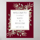 Featuring delicate watercolor leaves on a burgundy red background, this chic welcome sign can be personalised with your special wedding day information. Designed by Thisisnotme©