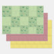 Greenery Butterflies is a stylish handcrafted design! Butterflies float over an abstract of hearts & flowers against a green background! This wrapping paper is done in a chequerboard pattern with the greenery butterflies and solid green! The other two sheets are done in solid yellow & solid pink! This delightful wrapping paper is sure to add charm to any gift!
