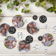 Elegant 40th wedding anniversary table confetti with photos of the couple, their initial inside a wreath, and forty years in a swirly script in black and white.