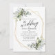 Modern Calligraphy Script Elegant Watercolor Botanical Greenery Wedding Invitation Card includes eucalyptus leaves, green botanical foliage, dusty blue leaves and other beautiful botanical greenery. Gold Geometric Frame, Photo Back