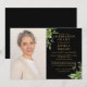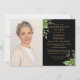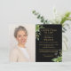 An elegant black and gold botanical greenery funeral personalised celebration of life remembrance photo invitation. Designed by Thisisnotme©