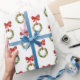 Greenery Christmas Wreath Red Bow Wrapping Paper