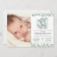 Greenery Cute Elephant Baptism Christening Photo Invitation
