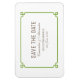 Simple and minimalist Deco Chic Save the Date Flexi Magnet with a modern green art deco ornamental border. This classic and elegant save the date magnet is easy to customise with your wedding details. Find more personalisation options by clicking Customise.