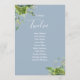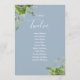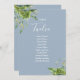 These elegant botanical greenery floral wedding table numbers can be personalised with your guests' seating plan set in chic typography on a dusty blue background. The cards are printed on the front and back (double-sided). Designed by Thisisnotme©